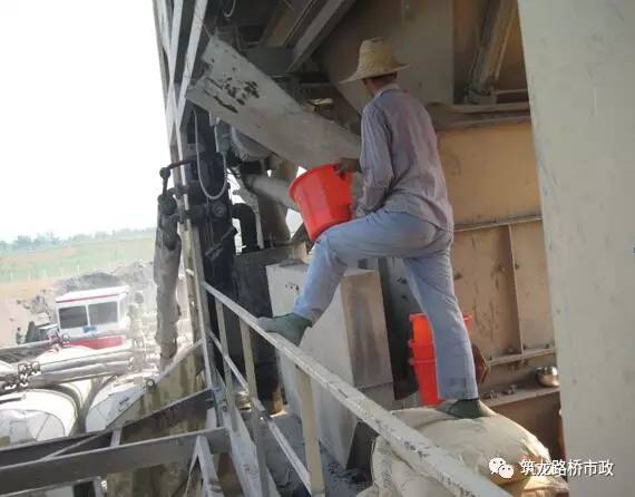 添加集料的同時將固體溫拌劑投入拌鍋攪拌均勻,盡量采用自動稱量添加設(shè)備,也可以采用人工投放方式,但用量必須控制準(zhǔn)確,固體溫拌劑摻量為瀝青用量的3%(外摻法,質(zhì)量比)。如果為人工投放,可預(yù)先準(zhǔn)備好每盤料用量的容器,提高投放效率,也可預(yù)先稱量好拌和樓每盤料所需固體溫拌劑用量,分成小袋直接投放。