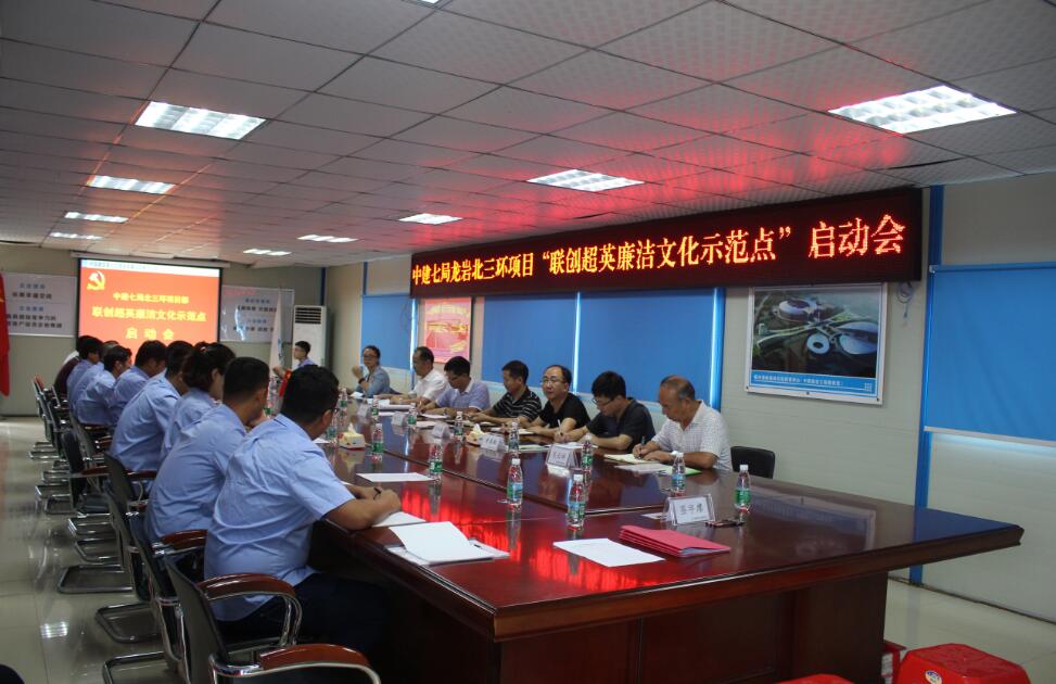 為進(jìn)一步加強(qiáng)項(xiàng)目黨風(fēng)廉政建設(shè)和反腐敗工作,7月18日下午,市城投公司聯(lián)合中建七局南方公司紀(jì)委、福州成建工程監(jiān)理有限公司共同在龍巖北三環(huán)項(xiàng)目召開聯(lián)創(chuàng)“超英廉潔文化示范點(diǎn)”啟動(dòng)會(huì)。