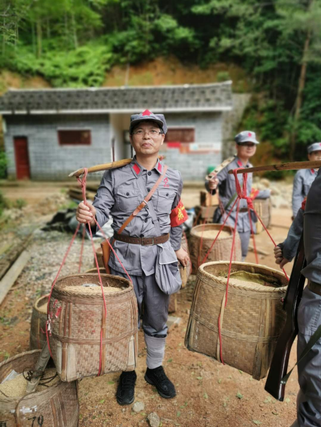 隨后,學(xué)員們?cè)谥醒胩K區(qū)松毛嶺戰(zhàn)役遺址,開展了瞻仰紅軍無(wú)名烈士墓、重走紅軍路等現(xiàn)場(chǎng)情景教學(xué),在郭公寨前線指揮所前,學(xué)員們聽取了紅軍戰(zhàn)士艱苦戰(zhàn)斗生活的詳細(xì)生動(dòng)講解,并親自感受送糧送彈、綁擔(dān)架、護(hù)送傷員等,用實(shí)際行動(dòng)致敬革命先烈。