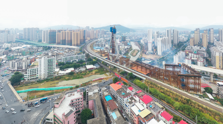 2019年12月31日上午9:28,龍巖大橋主橋首片鋼箱梁開始吊裝,標志著龍巖大橋主橋正式進入鋼箱梁施工階段。首片鋼箱梁提升、滑移、頂推共歷時約8小時完成,整個主橋結(jié)構(gòu)共有26片鋼箱梁。